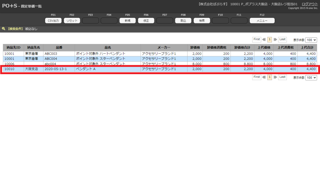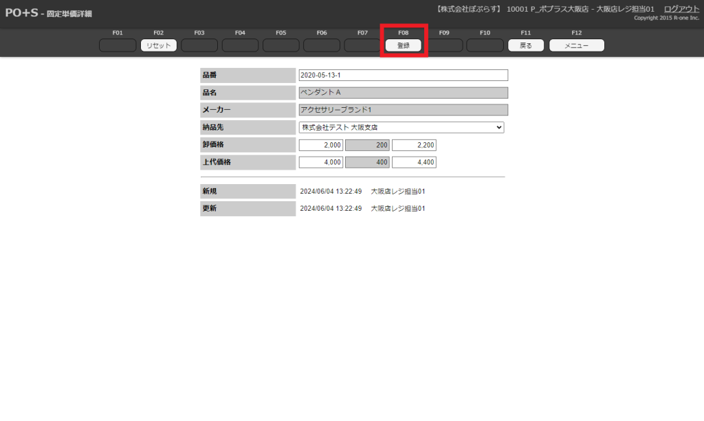 任意の情報を入力し、メニューキーの「登録」ボタン、またはキーボードの「F08」キーを押下します。