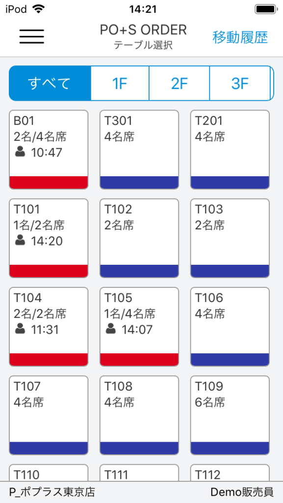 テーブル選択画面が表示されるので、移動先のテーブルを選択します。