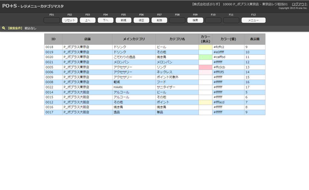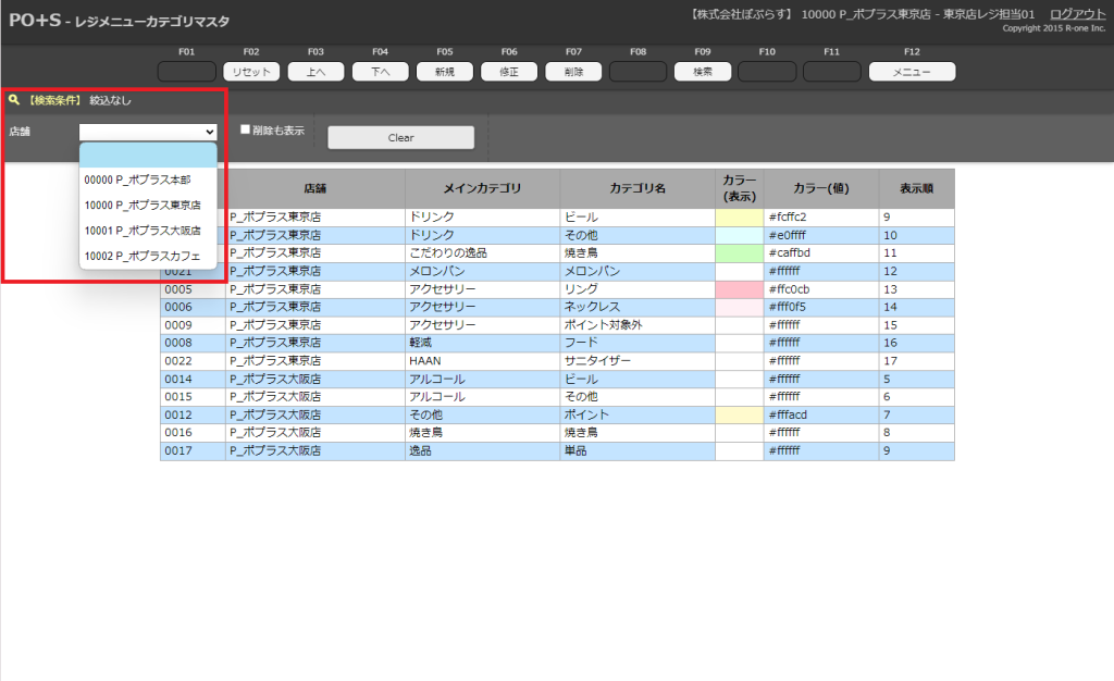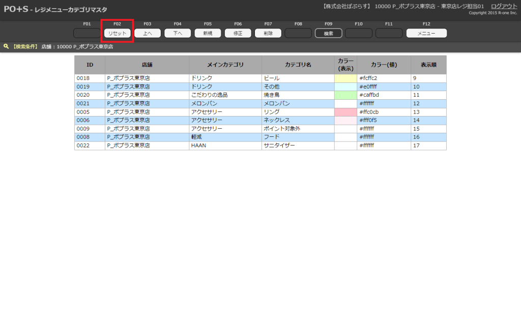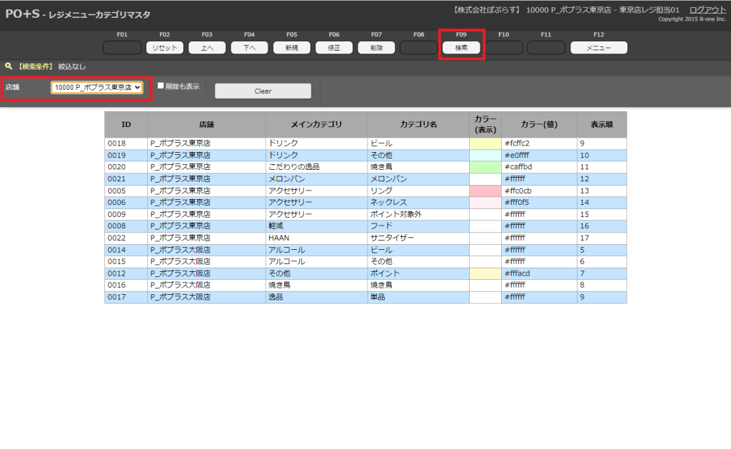 指定店舗を入力したら、メニューキーの「検索」またはキーボードのF9キーを押下します。
