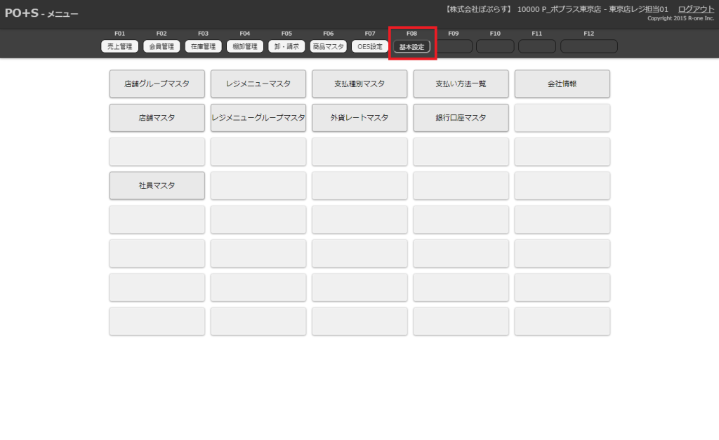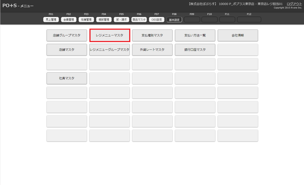 メニューボタン一覧から「レジメニューマスタ」を選択します。