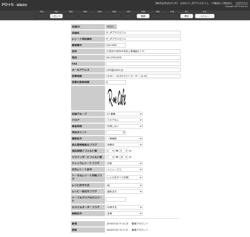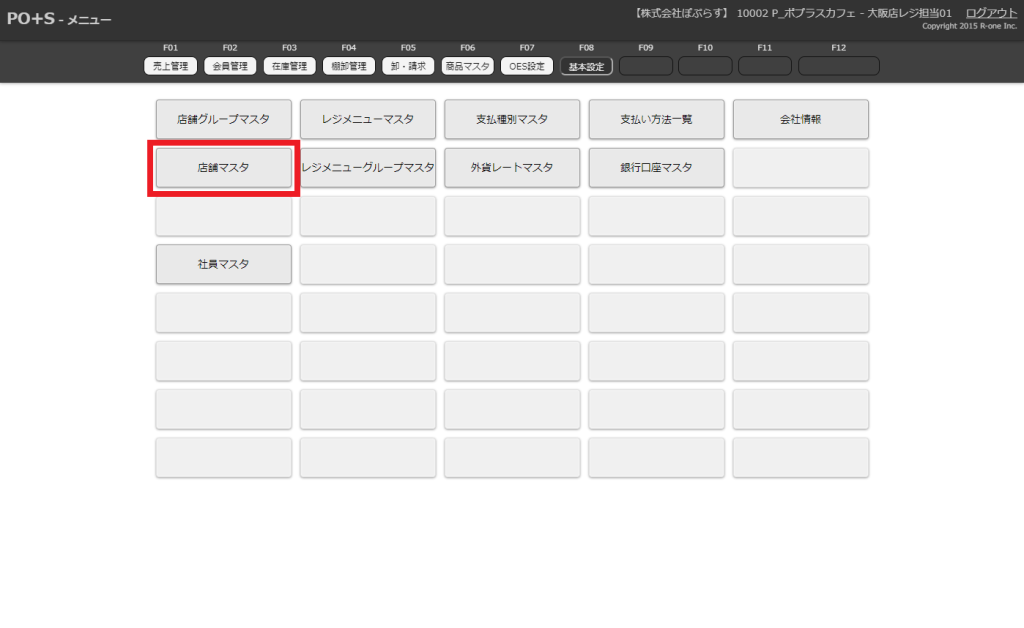 メニュー一覧から「店舗マスタ」ボタンをクリックします。