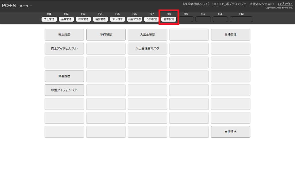 メニューキーの「基本設定」ボタンをクリック、またはキーボードの「F08」キーを押下します。