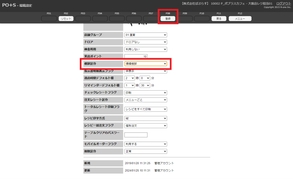 「棚卸区分」を「循環棚卸」に設定し、メニューキーの「登録」ボタンをクリック、またはキーボードの「F08」キーを押下します。