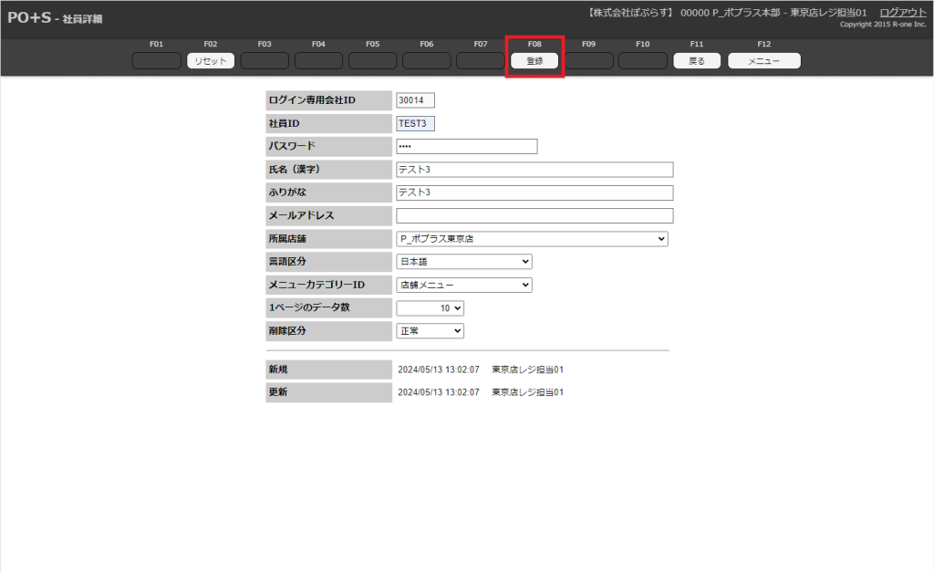 新規の社員マスタが登録されます。