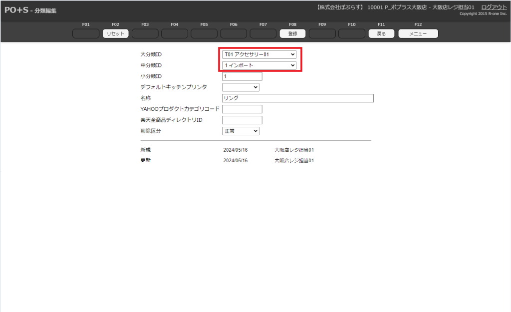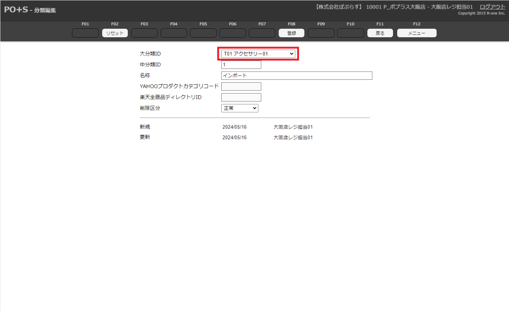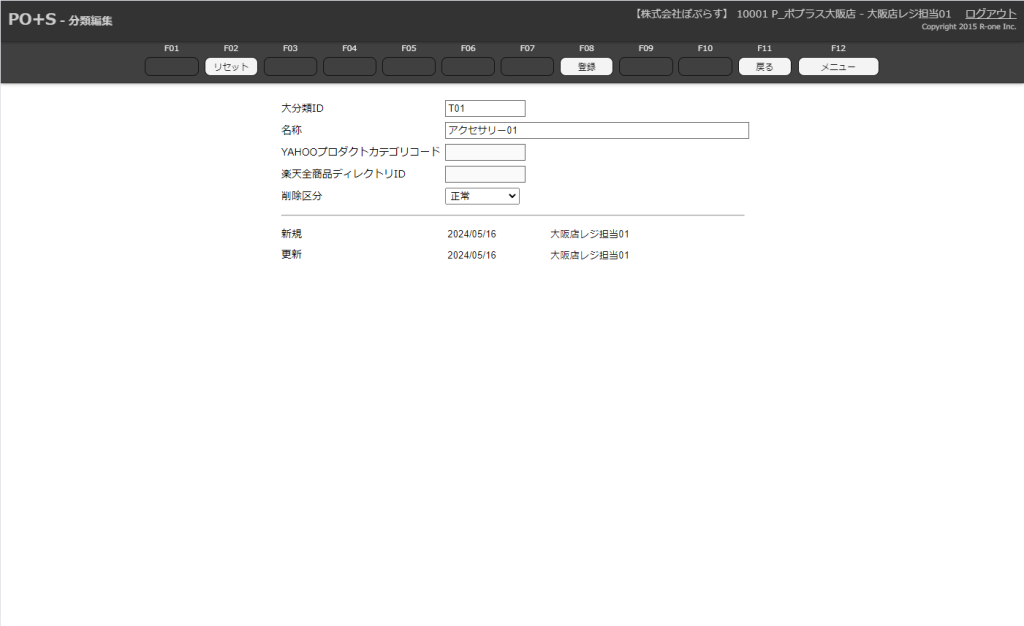 | 削除区分 | 〇 | PO+S上での表示。表示する場合は「正常」、非表示にする場合は「削除」に設定。 |