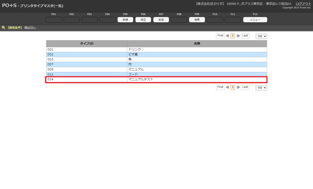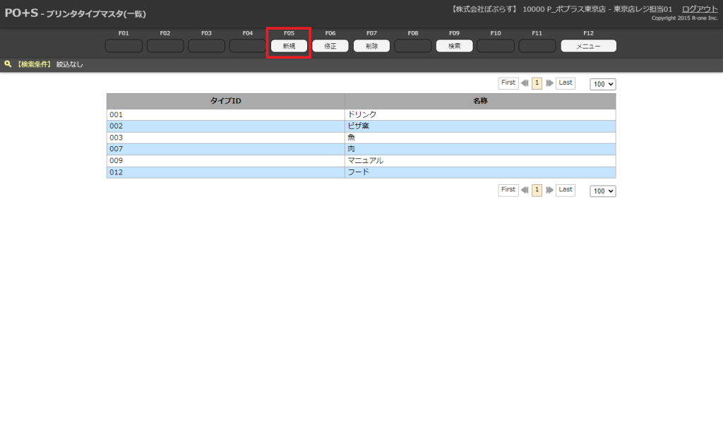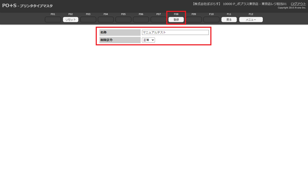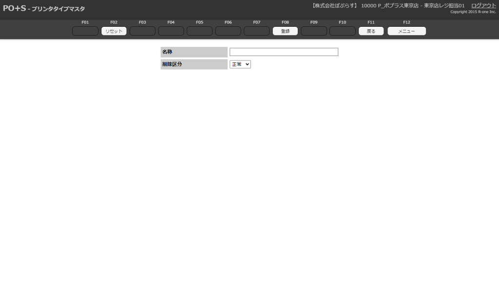 OES初期設定 プリンタタイプを登録する プリンタタイプマスタ 新規登録 COPY Title&URL 目次新規登録方法各項目の説明新規登録方法 プリンタタイプマスタからメニューキーの「新規」またはキーボードのF5キーを押下します。 新規登録画面が表示されます。 必要欄を入力し、メニューキーの「登録」またはキーボードのF8キーを押下します。 新規のプリンタタイプマスタが登録されます。 各項目の説明 項目名必須説明名称〇新規登録したい名称を入力削除区分〇正常or削除。当てはまる項目を選択 ※削除を選択すると非表示になります