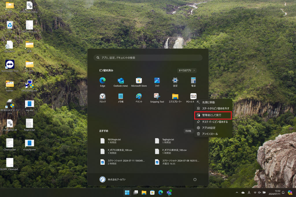 PO+S Registerのアプリを右クリックして「管理者として実行」をクリックします。