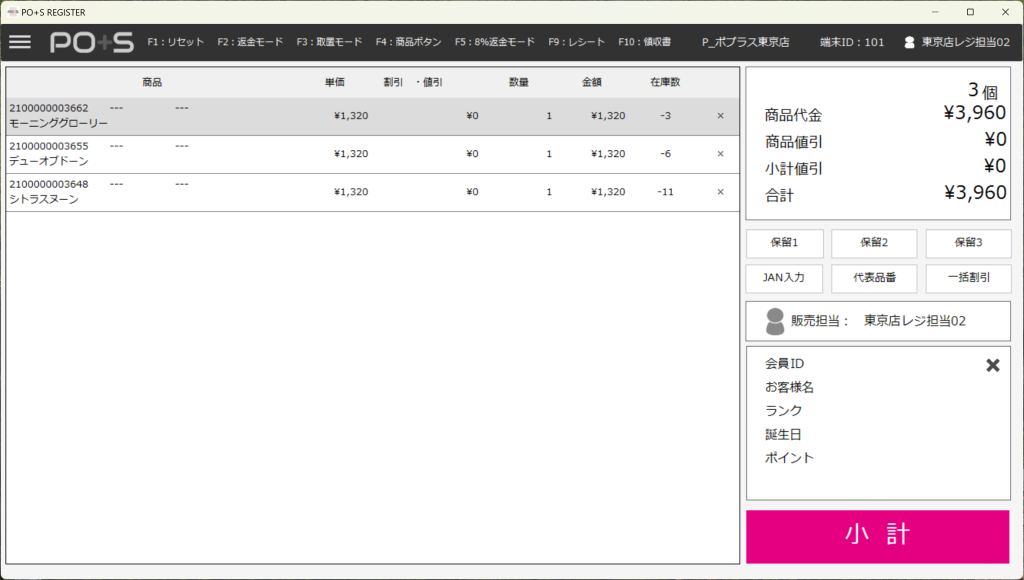 商品を入力し、小計ボタンを押下し、預り金入力画面へ遷移します。