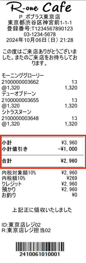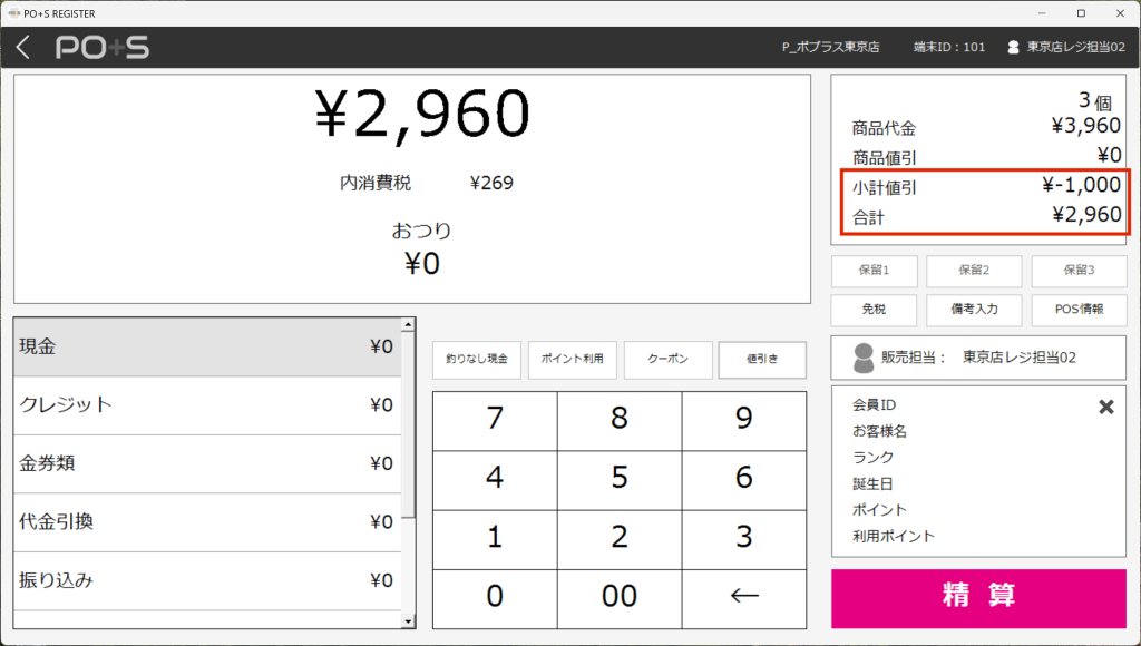 適用後の金額が自動で計算されますので、内容に間違いがないか確認ください。