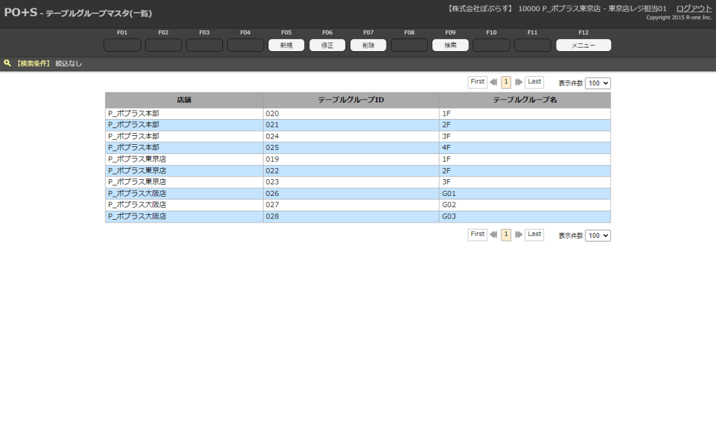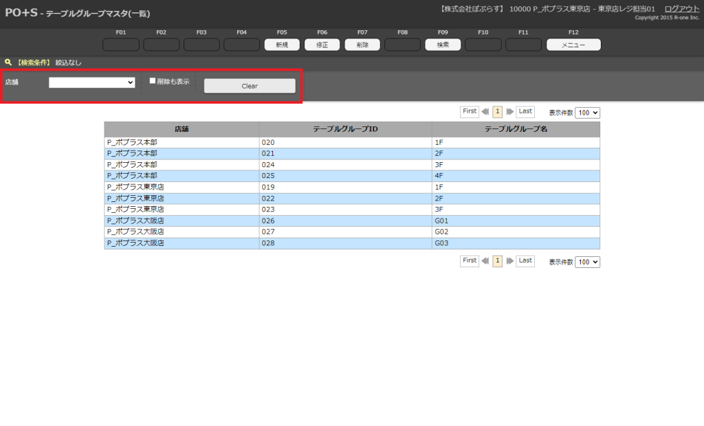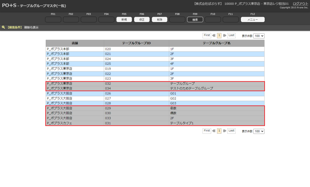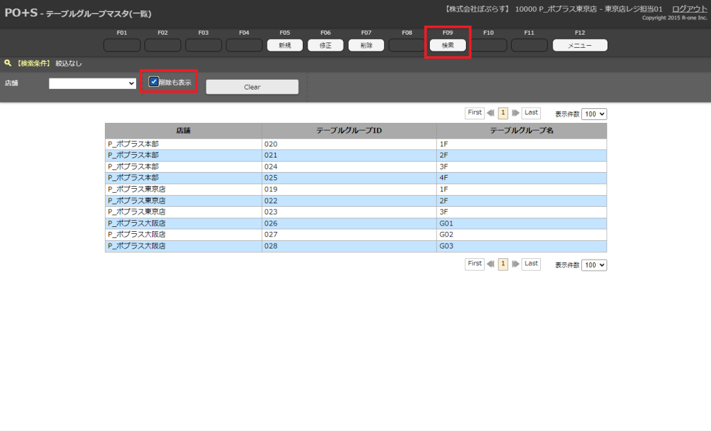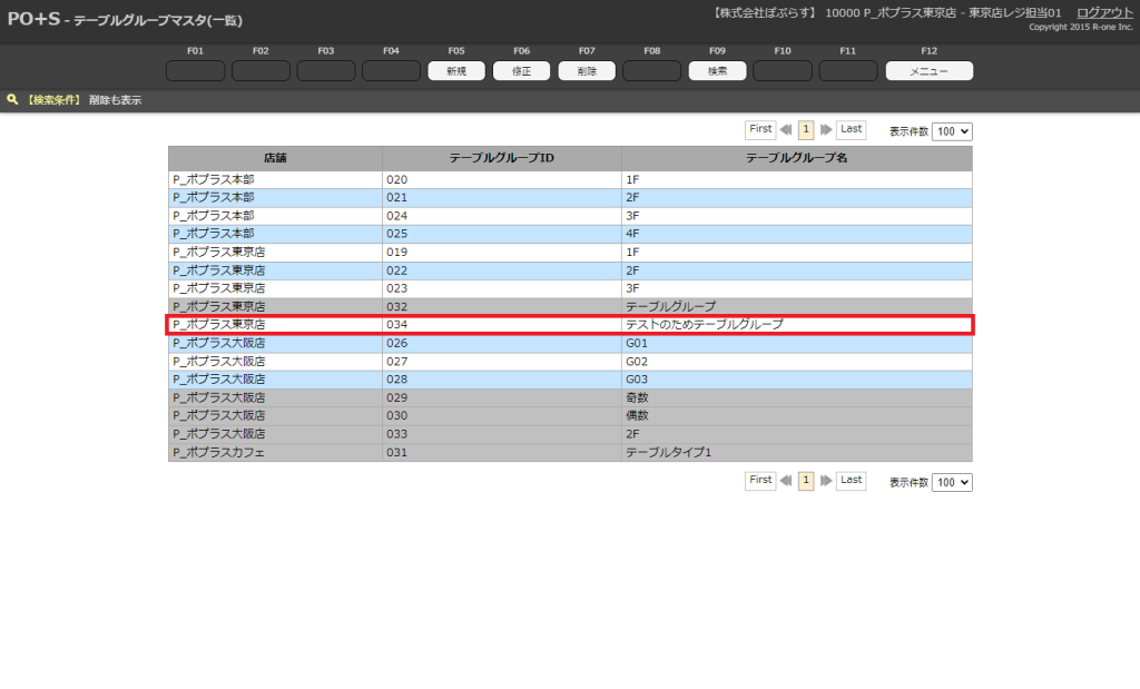 以前削除したテーブルグループマスタを含んだ検索結果が表示されます。