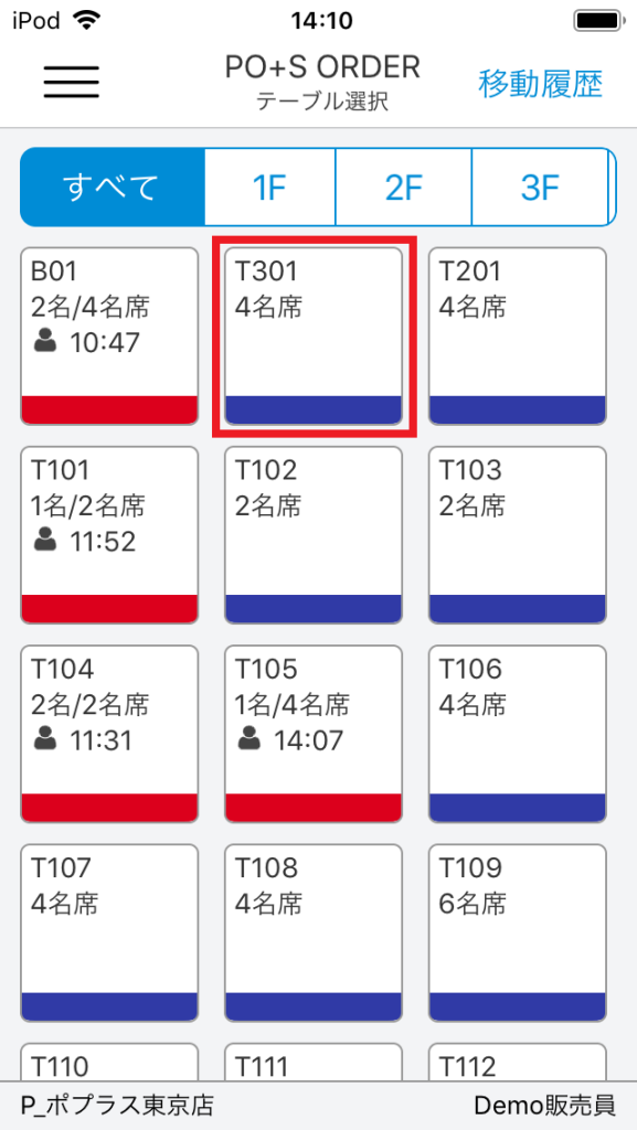 予約をするテーブル番号を押下します。